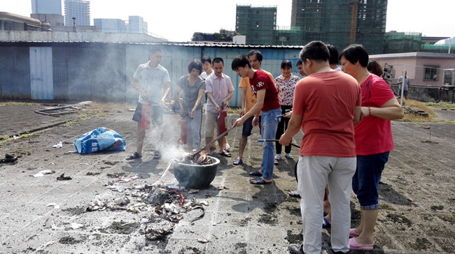 近日入夏的廣東氣溫逐日攀升,睿牛作為一家制作羽絨服、棉服的生產型羽絨服工廠 ,廠區內有很多原材料都是易燃物品,尤其是布料、填充物羽絨和棉,一旦發生火災后果不堪設想的,所以睿牛人一直堅守:消防安全生產大于天的生產原則。廠內消防負責人黃師傅也根據最近的高溫天氣給廠內員工們普及強調消防安全知識會議及演習: